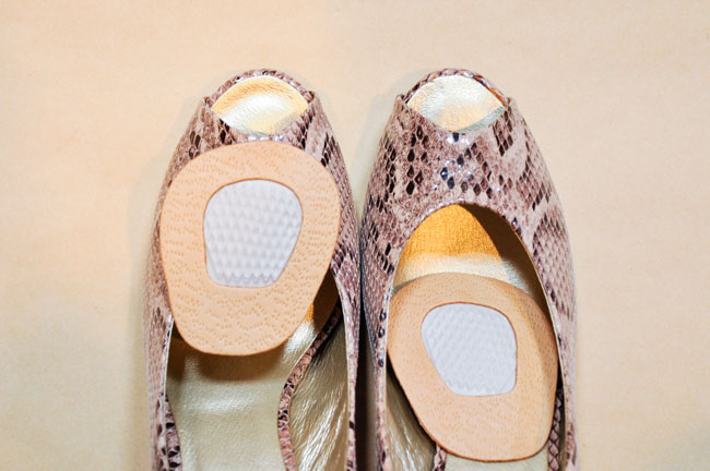 將止滑墊背膠撕下,貼於鞋內適當處即可。