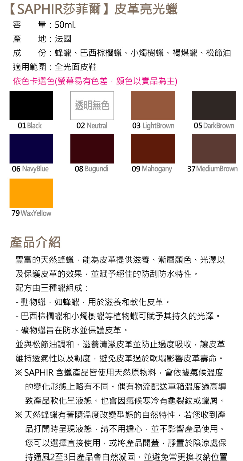富含天然蜂蠟,能快速讓皮革如鏡面般光亮