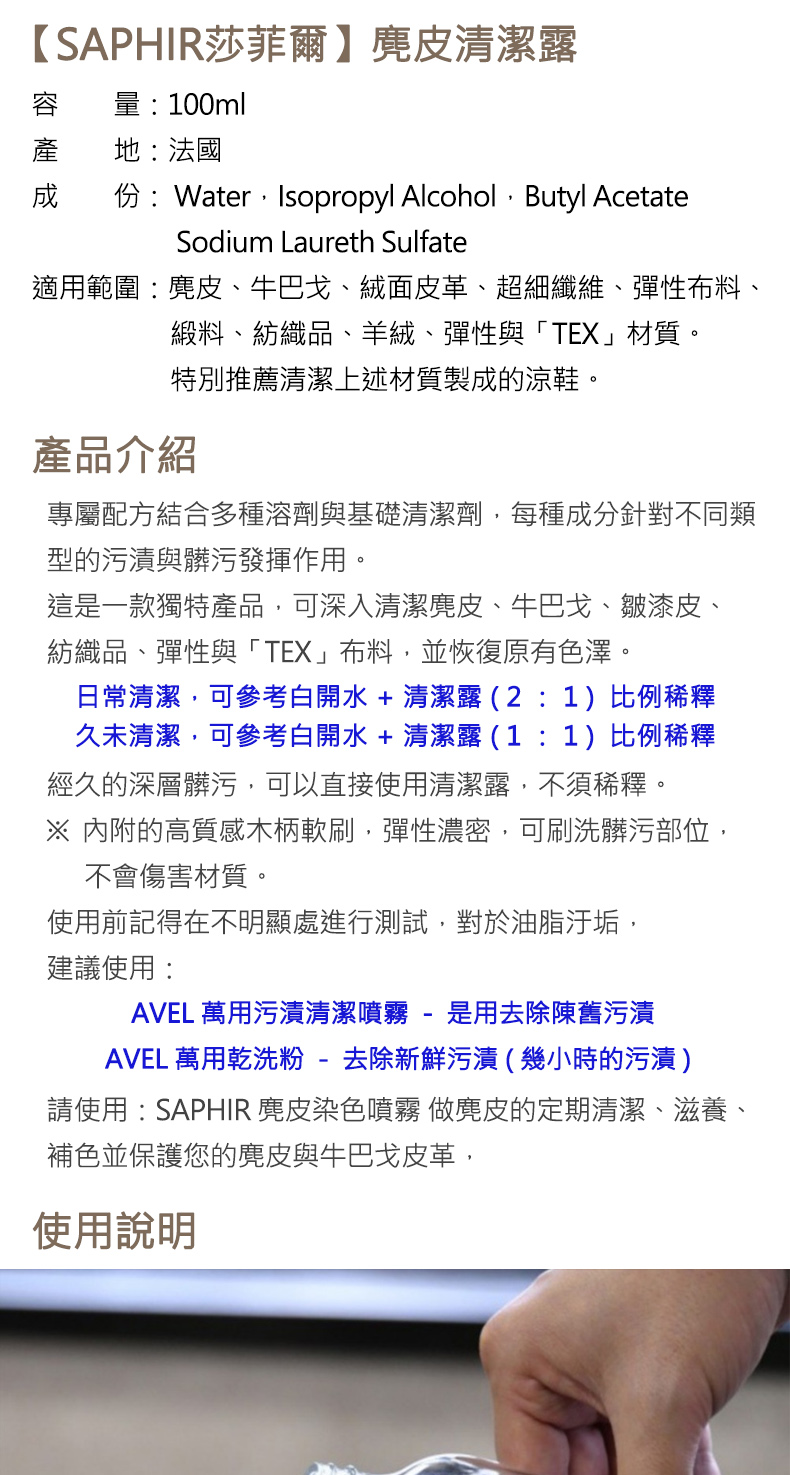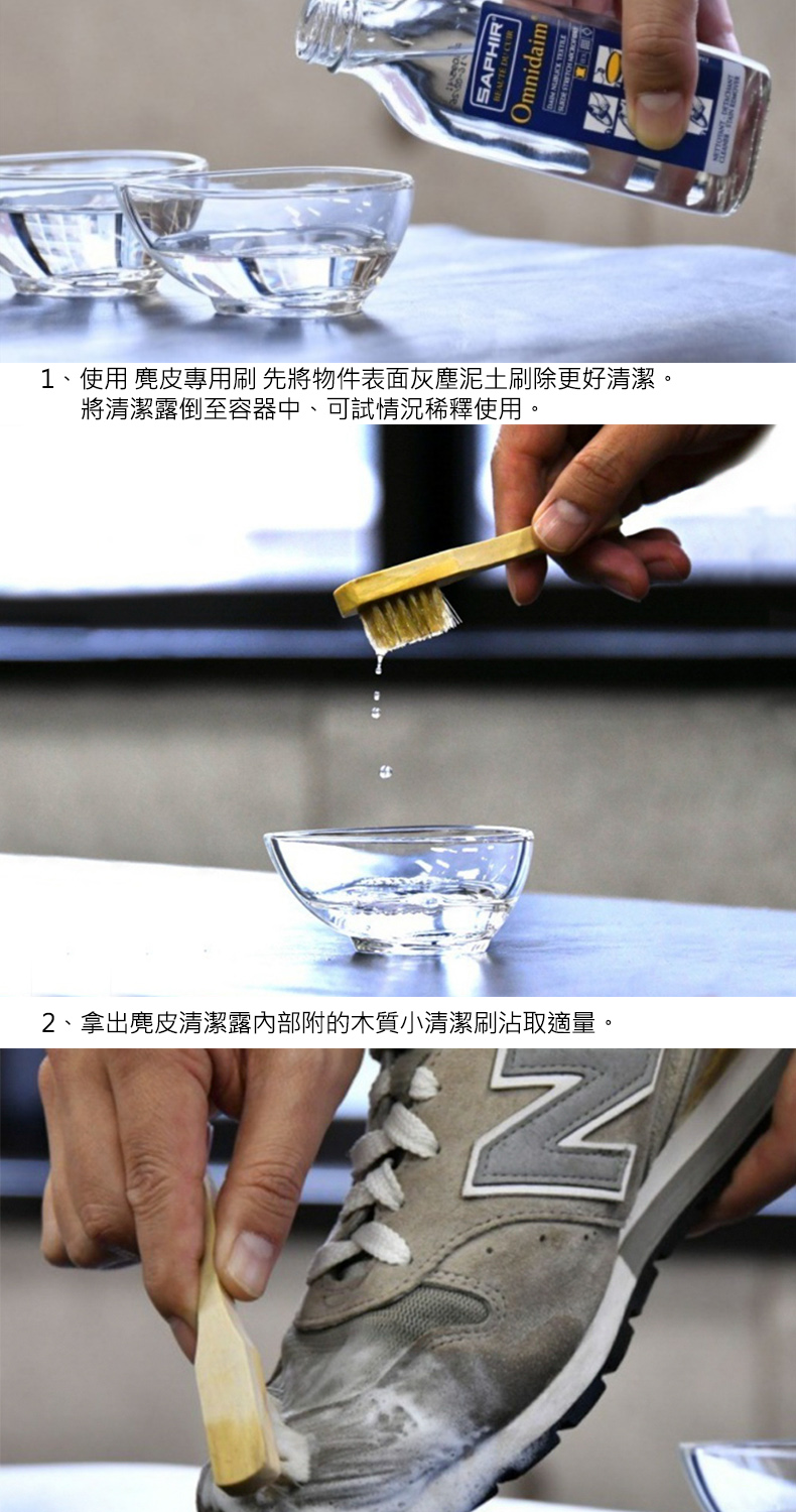 適用於所有麂皮、絨面革和紡織製品 可以輕易地將髒污徹底清除