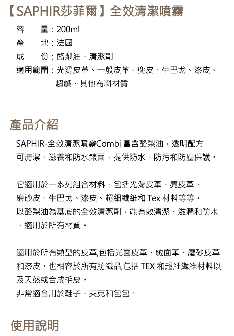 輕鬆均勻的噴灑就可以達到清潔 滋潤和防水效果