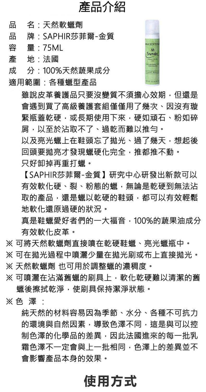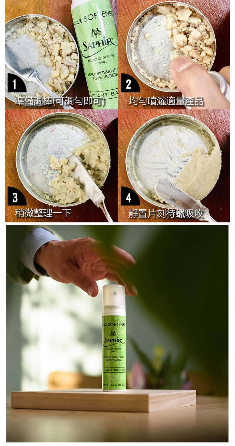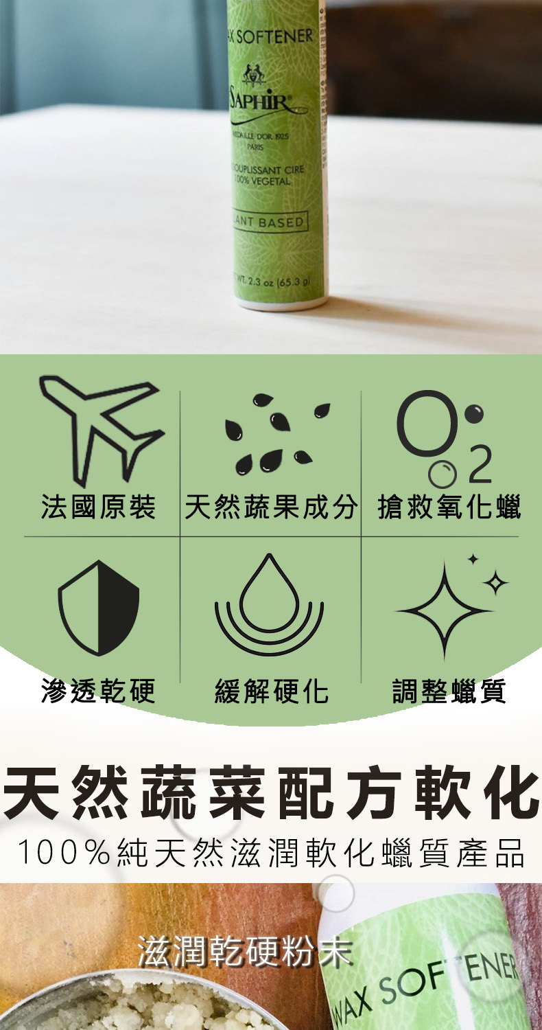 100%的蔬果油成分有效軟化鞋蠟