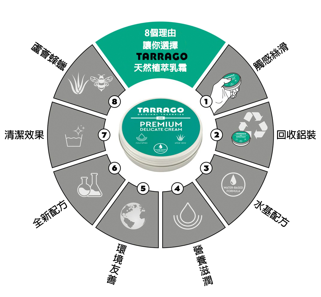 以天然植物油、蘆薈油與蜂蠟以水基底,清潔滋養光澤三效合一乳霜